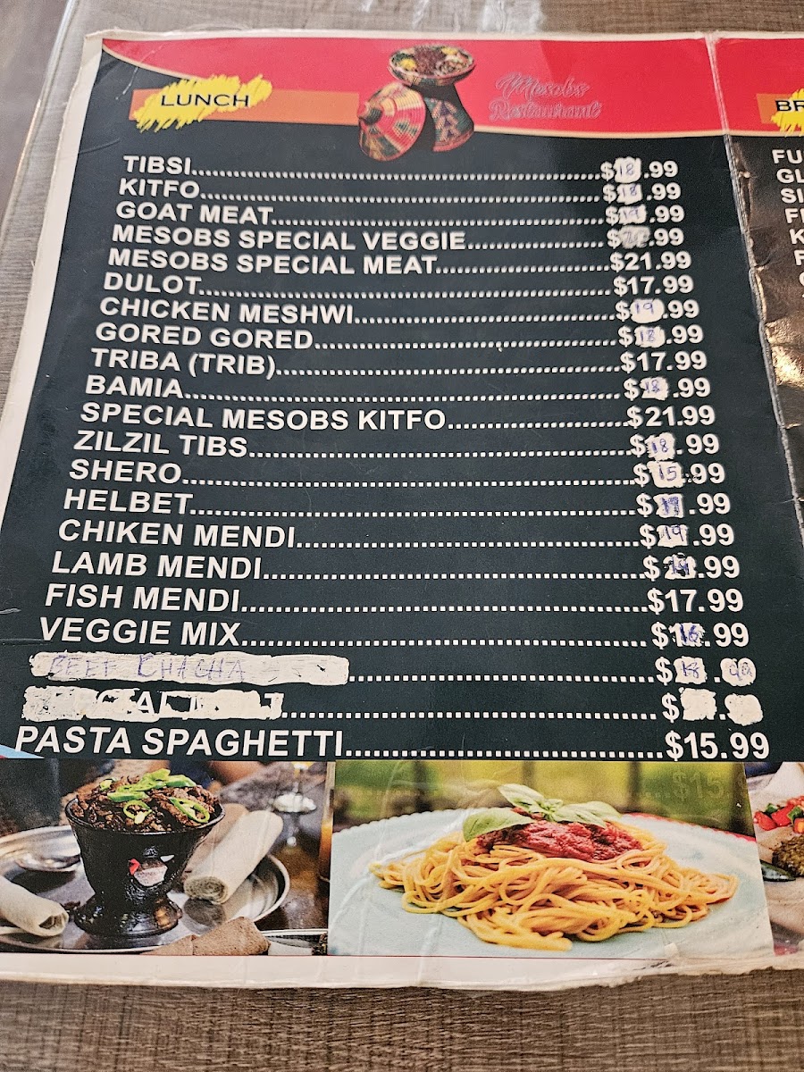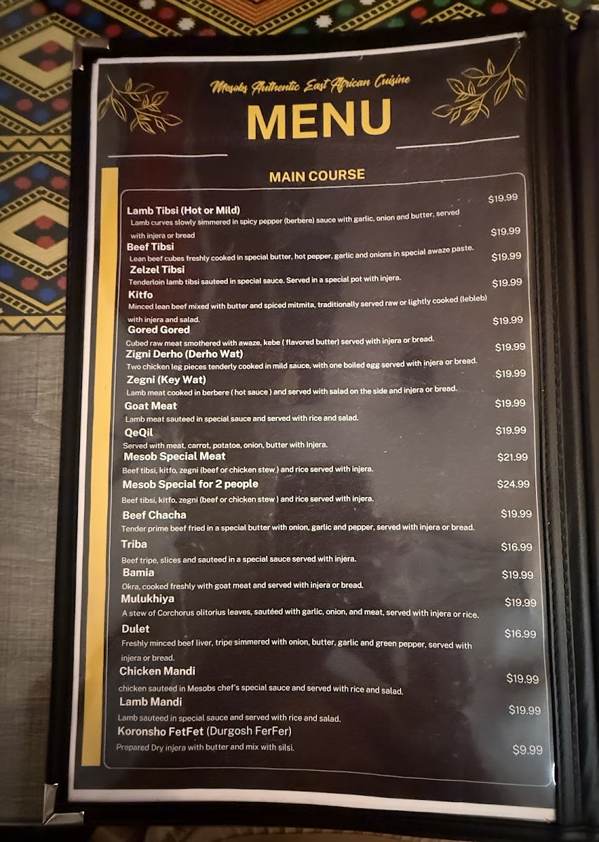 Mesobs Restaurant Menu